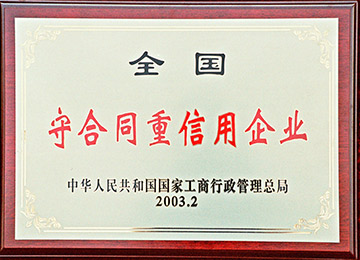 伊力特實業股份有限公司榮獲國家工商行政管理總局頒發的“全國守合同重信用企業”證書