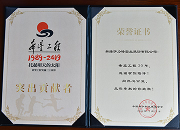 伊力特實業股份有限公司榮獲幸福工程兵團組委會授予的“幸福工程愛心奉獻特別獎”